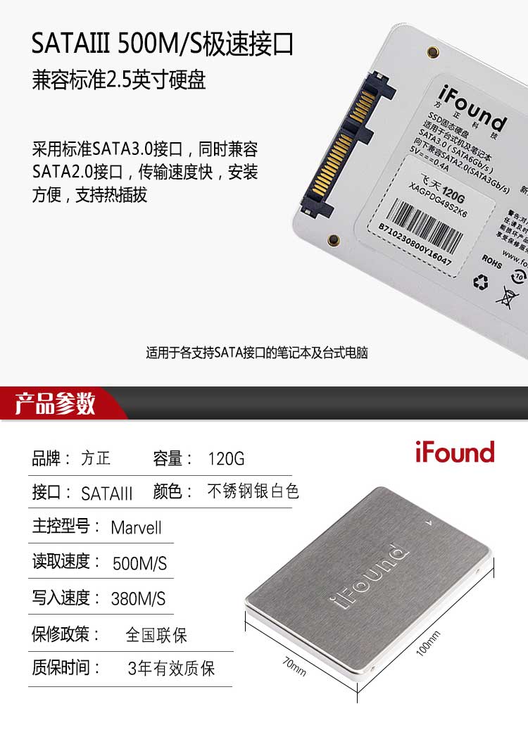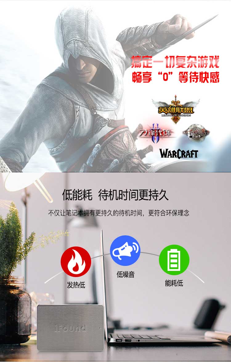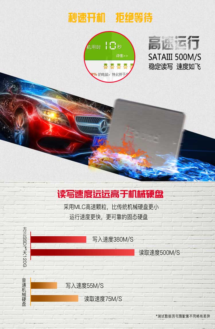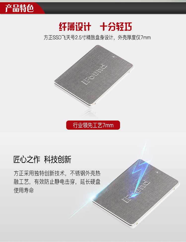 产品特点: 极速开机运行,让等待从此不再漫长; MLC颗粒让SSD性能更加稳定持久; 7mm超薄让机箱更小; 零噪音让耳朵解放出来; 黑色金属外壳,质感的灵魂; 三年质保,售后保障无忧