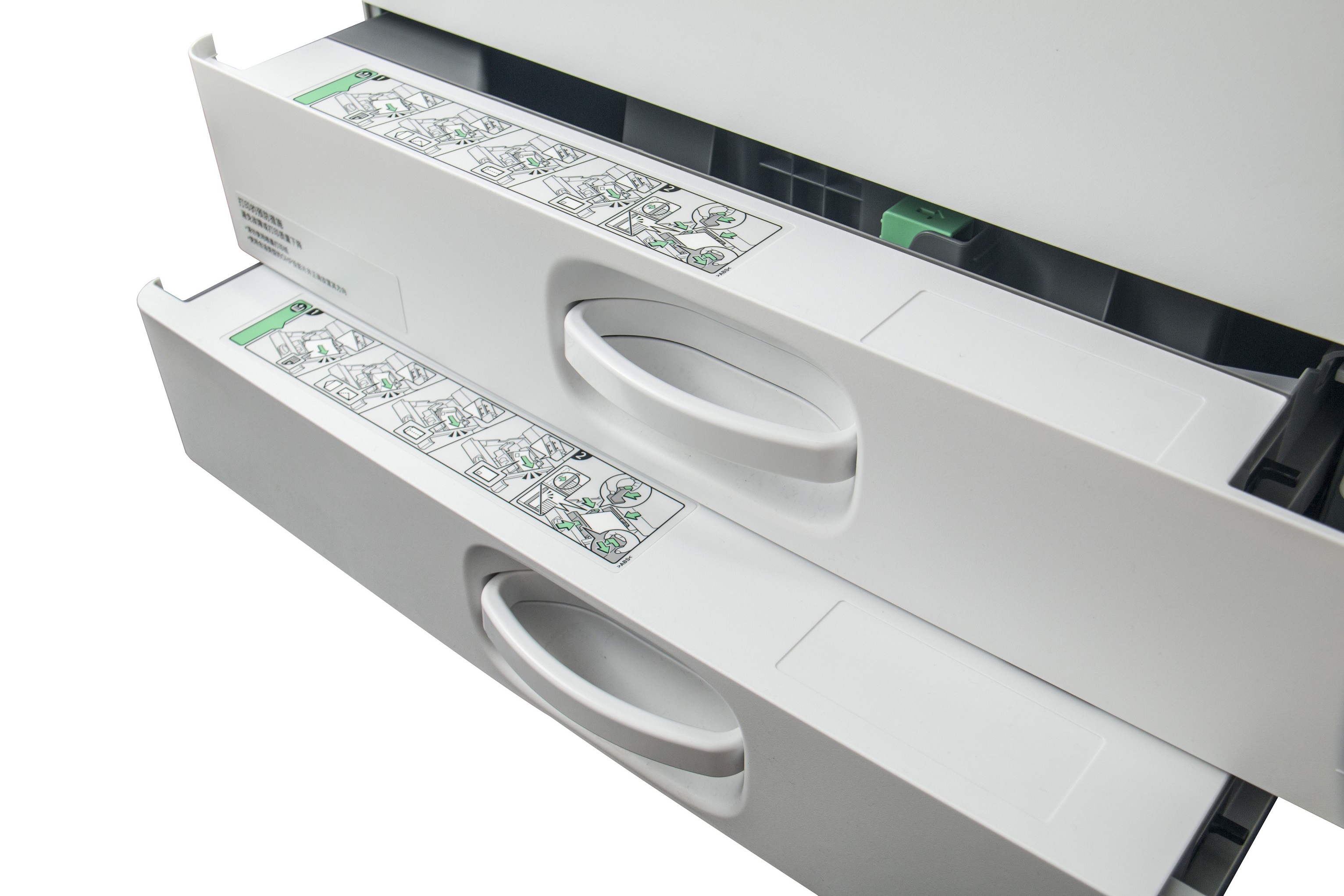 2.5高速扫描:方正FR3225S采用高速自动进纸器,可轻松实现高达80页/分钟的扫描速度,相当于一台高速扫描仪 2.6双纸盒:方正FR3225S配置了两个容量为550页的纸盒,纸盒拉手采用可活动的物理设计,整体才管用自动减速滑入设计,推拉更省力,避免硬件碰撞的声音,更适合办公室女性轻拉轻合操作,双纸盒的标准配置可轻松实现电子分页,旋转分页,再也不用为了文件分页而烦恼,同时配置100页手动自定义纸张送纸台,共可容纳1200页纸张。 2.7扩展性强:方正FR3225S数码复合机,充分考虑到日常办公需求,集打印,复印,扫描,网络于一体;标配双面打印器,自动双面打印,为您节省纸张费用,同时标配双面进纸器,可以实现双面复印功能;大容量双纸盒,可以实现电子分页和旋转分页,还具有多页合一,小册子打印,SD卡打印,U盘打印等实用性功能。