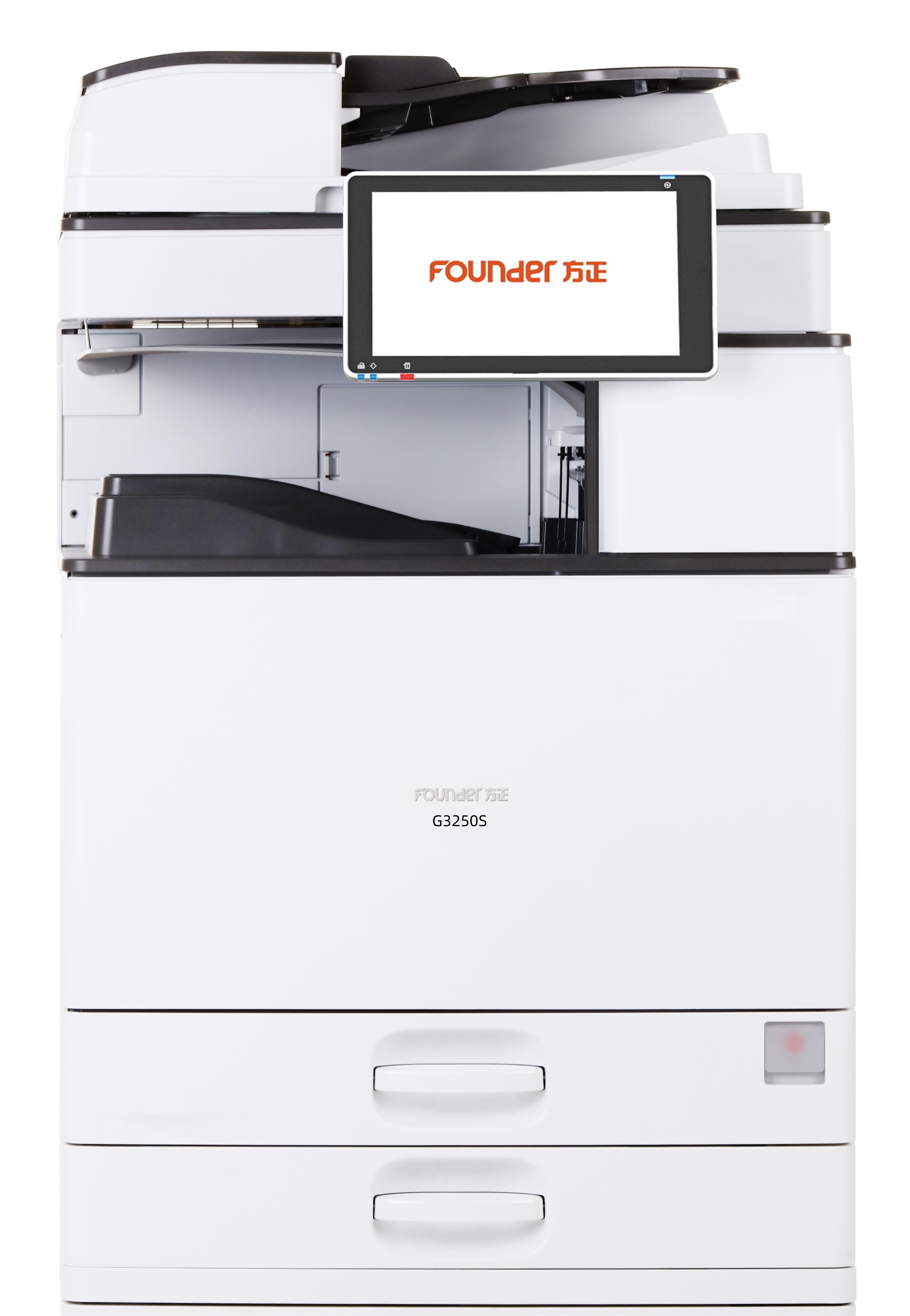 2人性化设计:方正G3250S采用10.1英寸高品质智能触控屏,具有平板电脑般的智能操控性,功能选择一目了然,操作面板的角度可在10~90度之间调节,来适应不同的光线环境,同时能满足轮椅用户的操作。该款机器手动送纸盘搭载旋转定位传感器,根据电阻的变化,以毫米精度检测信封和明信片等不固定尺寸纸张。方正G3250S具有防卡纸设计,双面打印装置的导板部件为透明,客户可以一眼看出是否卡纸,并准确判定卡纸位置,充分体现方正的人性化设计理念。 2.3安全设计:方正G3250S从产品设计上充分考虑国内用户的信息安全需求,从产品的硬件设计上,就摒弃了蓝牙无线传输模块,彻底杜绝信息泄露通道,同时该款设备还具有感光鼓潜影自动清除、内存自动清除、硬盘加密、硬盘残留数据删除、安全认证、固件签名校验、端口控制和关闭、防非法复印水印、PIN码打印等安全保障功能。