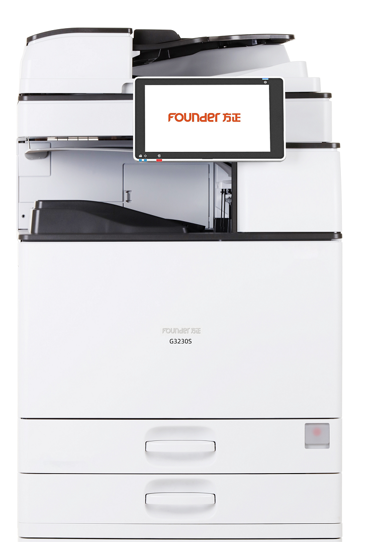7双纸盒:方正G3230S标配了两个容量为550页的纸盒,纸盒拉手采用可活动的物理设计,整体采用自动减速滑入设计,推拉更省力,可轻松实现电子分页,旋转分页。同时配置100页手动自定义纸张送纸台,该机型搭载旋转定位传感器,手动进纸托盘的尺寸检测精度得到提升,共可容纳1200页纸张。 8兼容性强:方正是国内知名IT厂家,坚持走自主创新道路,积极参与国产化生态建设,方正G3230S作为重要的输入输出类产品,其打印扫描驱动均完成与国产龙芯、飞腾、鲲鹏等不同CPU平台的适配认证,并兼容麒麟、统信等不同版本的国产操作系统及国产平台下的不同应用软件,具备强大的兼容性。 9扩展性强:方正G3230S数码复合机,充分考虑到日常办公需求,具有丰富的选配件供用户选择,可选配小册子装订器,实现角钉,平钉,骑马钉的装订功能,还可以选配无针装订器,实现无针装订,同时纸盒容量最大可以扩展到4700页,极大提升业务效率。 参数规格: