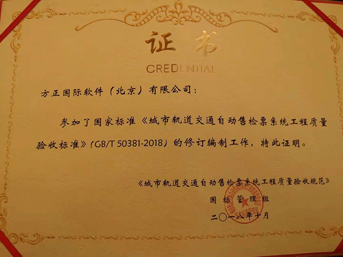 在26家企业、53位行业专家的共同努力下,历时4年完成了《城市轨道交通自动售检票系统工程质量验收规范》GB/T 50381-2018的修编工作。国内的AFC技术标准也随国家 “一带一路”的新时代政策走出国门,走向世界,被其他国家学习和引用。