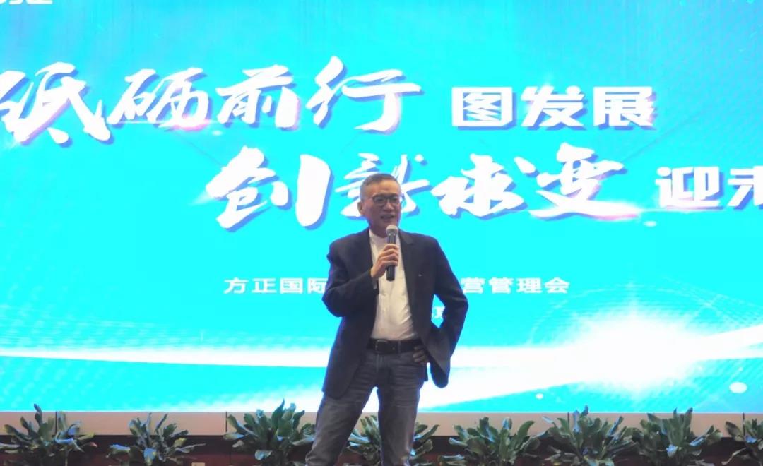 方正集团董事张旋龙首先致辞,他表达了对方正国际深厚的感情并鼓励大家在新的一年里再接再厉,创造出更好的成绩。