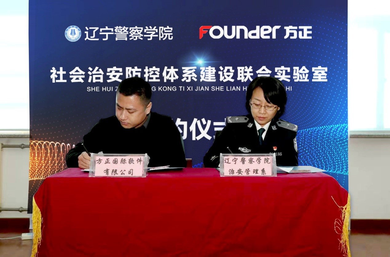 今年年初,方正国际软件(沈阳)有限公司与辽宁警察学院正式签署战略合作协议,揭牌成立“社会治安防控体系建设联合实验室”,标志着辽宁警院、方正国际强强联合,推动社会治安防控网迈向新阶段。