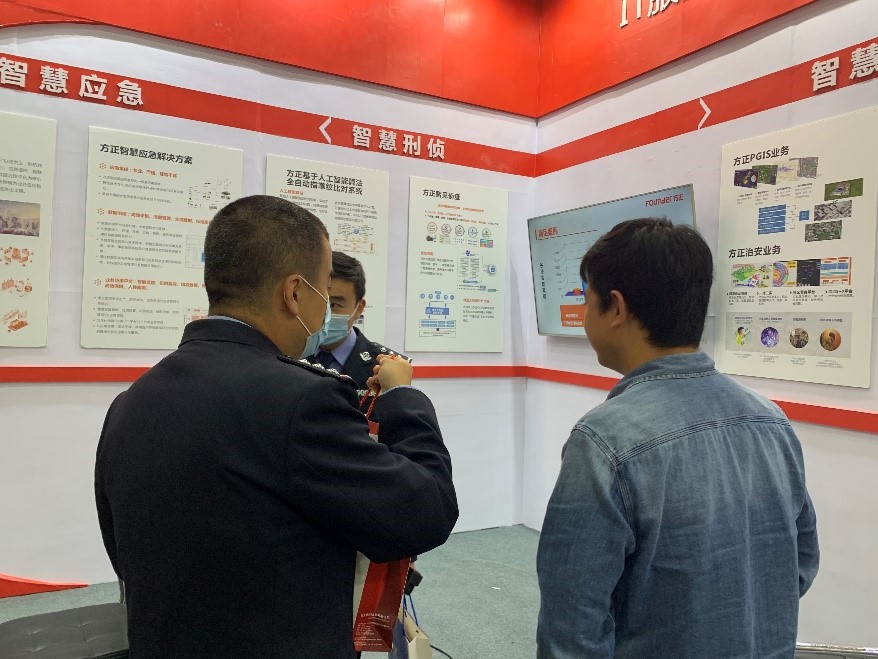 参展期间,方正国际利用多种媒介直观生动地向大会主办参展嘉宾及西宁市民展示了公司在公共安全信息化领域的最新成果和产品,包括广泛应用于我国各级公安机构的警用地理信息系统、可视化指挥调度系统、社区警务系统、新一代警务综合系统、方正基于人工智能算法全自动指掌纹比对系统以及方正智慧应急解决方案、方正智慧监狱解决方案等一系列行业解决方案。