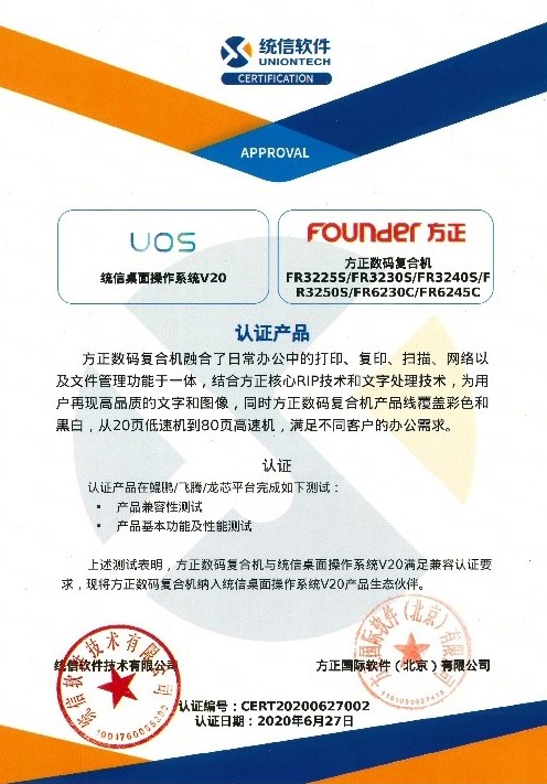 近期,方正国际信创实验室组织硬件事业部与信创适配中心,联合国内优秀操作系统厂家统信软件、麒麟软件、华为技术以及CPU厂家龙芯中科、天津飞腾等,完成方正国际外设全线产品兼容性适配测试,充分证明方正国际外设产品在通用兼容性、安全性、扩展性、产品性能和可靠性等方面,均能满足用户关键性应用需求。