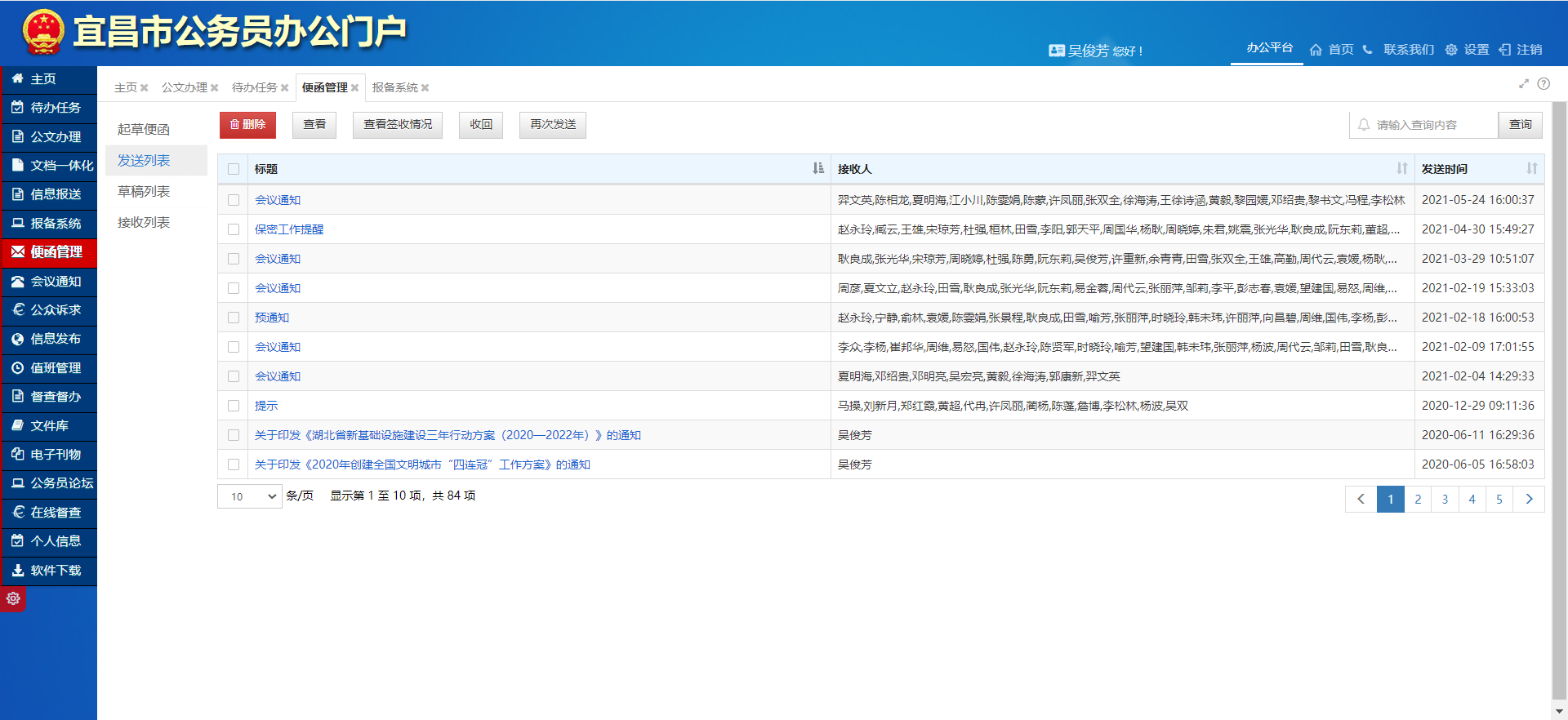 宜昌市公务员办公门户不是一个单纯的管理系统。通过业务数据电子化、信息实时传递、共享资料,通过与第三方系统的数据交换,最终实现压缩管理层级,减少办事环节,提高行政效率的管理目标。