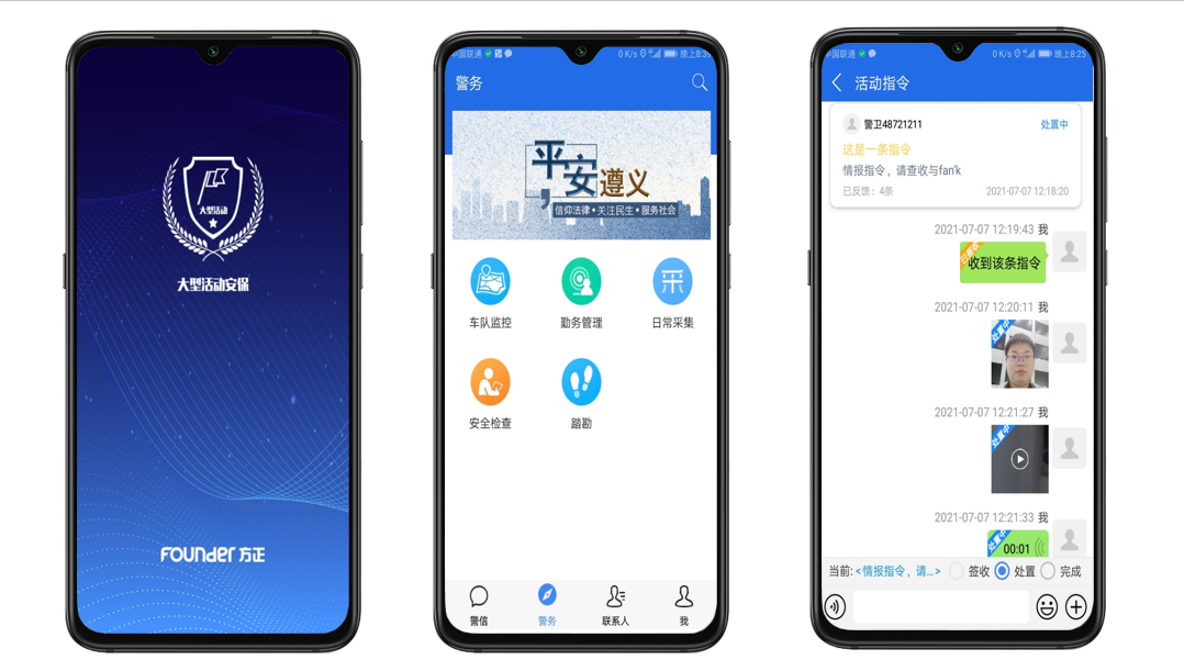 按照公安部、省公安厅关于社会治安防控体系建设决策部署,助力遵义市公安局全力打造“1+9+T”为主架构的社会治安防控平台及应用体系,方正国际与遵义市公安局联合研发的“大数据+安保”实战应用系统,作为九大业务系统之一,是方正国际大型活动安保系统在广州亚运会、南京亚洲青运会、全运会、珠海航展、厦门金砖国家峰会等大型活动应用以来的进一步落地深化。